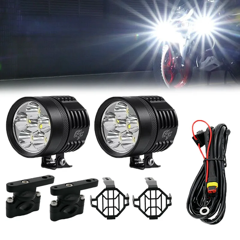 BEST 2Pcs 6 LED Motorcycle Light Headlight Assembly Universal Scooter Fog Spotlight Relay Wire Protector