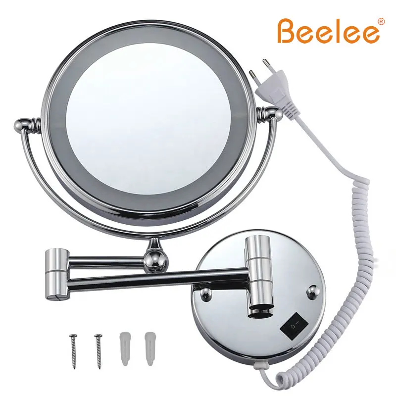 Beelee Furniture Mirror Wall Mounted Makeup Mirror Led Double Side 360-degree Swivel 8 Inch 5x Magn