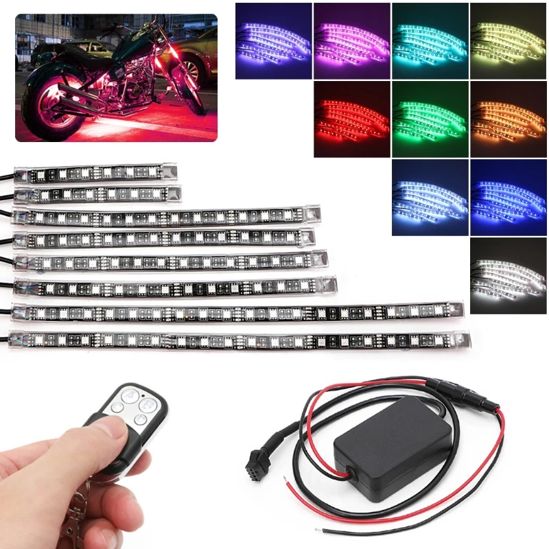 8 Pcs 5050 SMD Strip Flexible RGB Flashing Light LED Remote Control Motorcycle